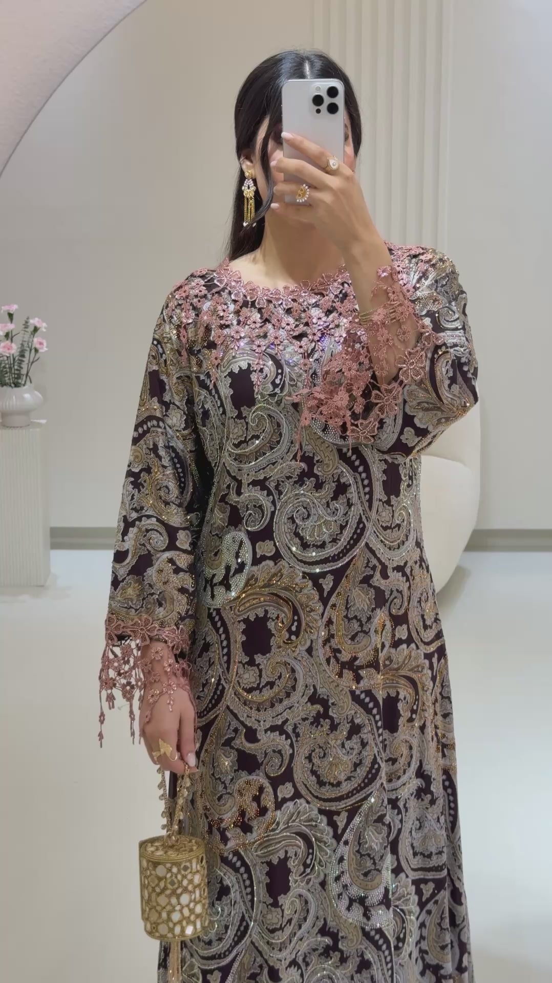 Shiffon crystal with silk plain silk lining